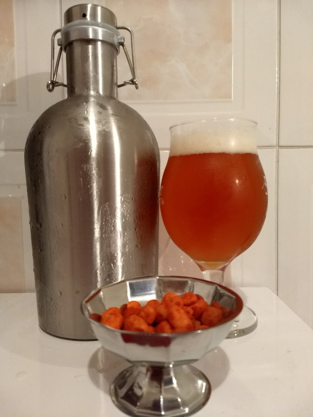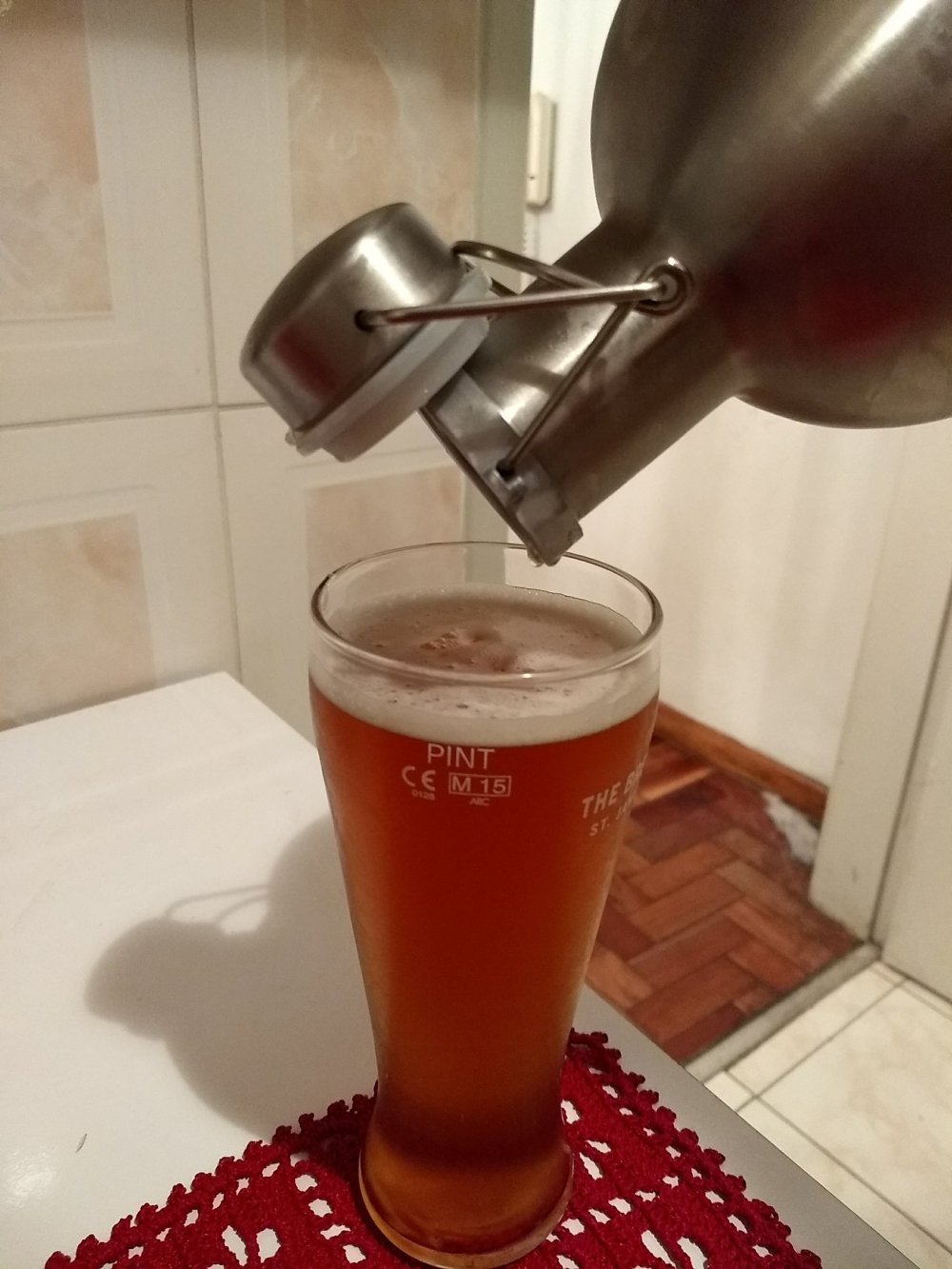 Servi uma taça honesta. Que porrada. O que foi aquilo? Enquanto fazia um pizza (desde a massa), acabei empolgando e “sequei” o growler até o final da noite.