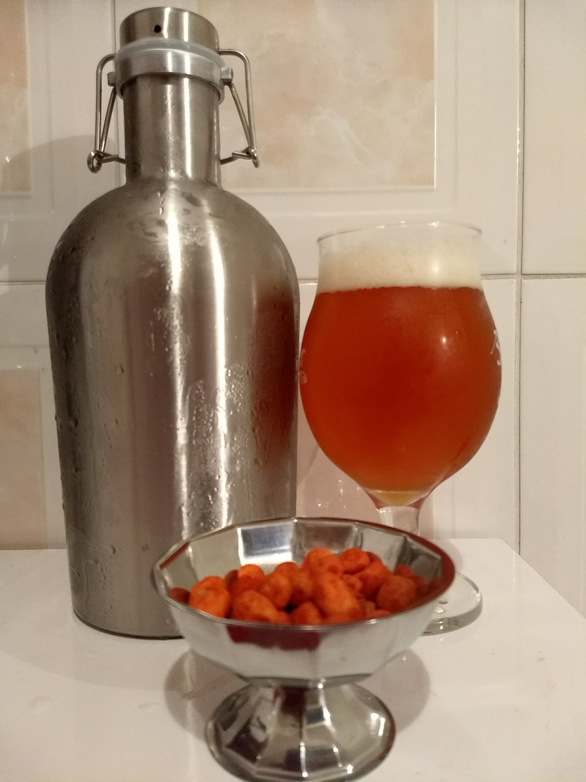 Servi uma taça honesta. Que porrada. O que foi aquilo? Enquanto fazia um pizza (desde a massa), acabei empolgando e “sequei” o growler até o final da noite.